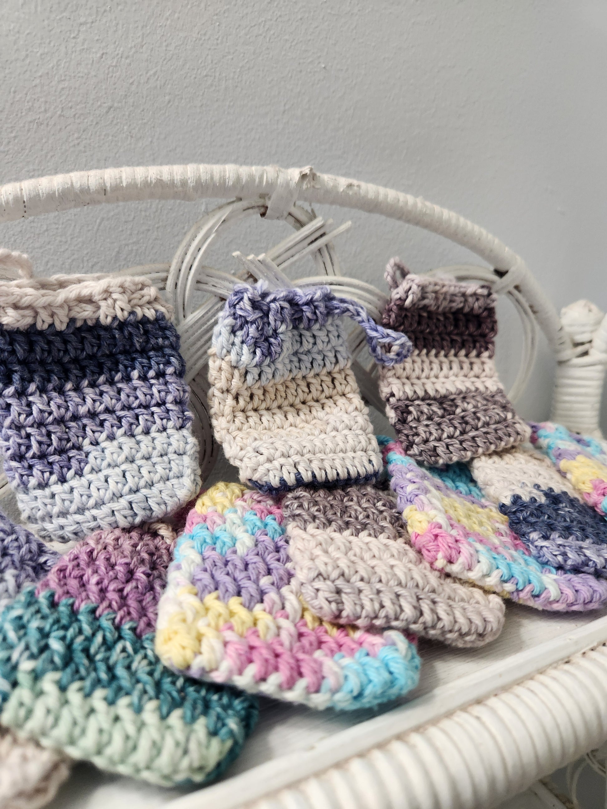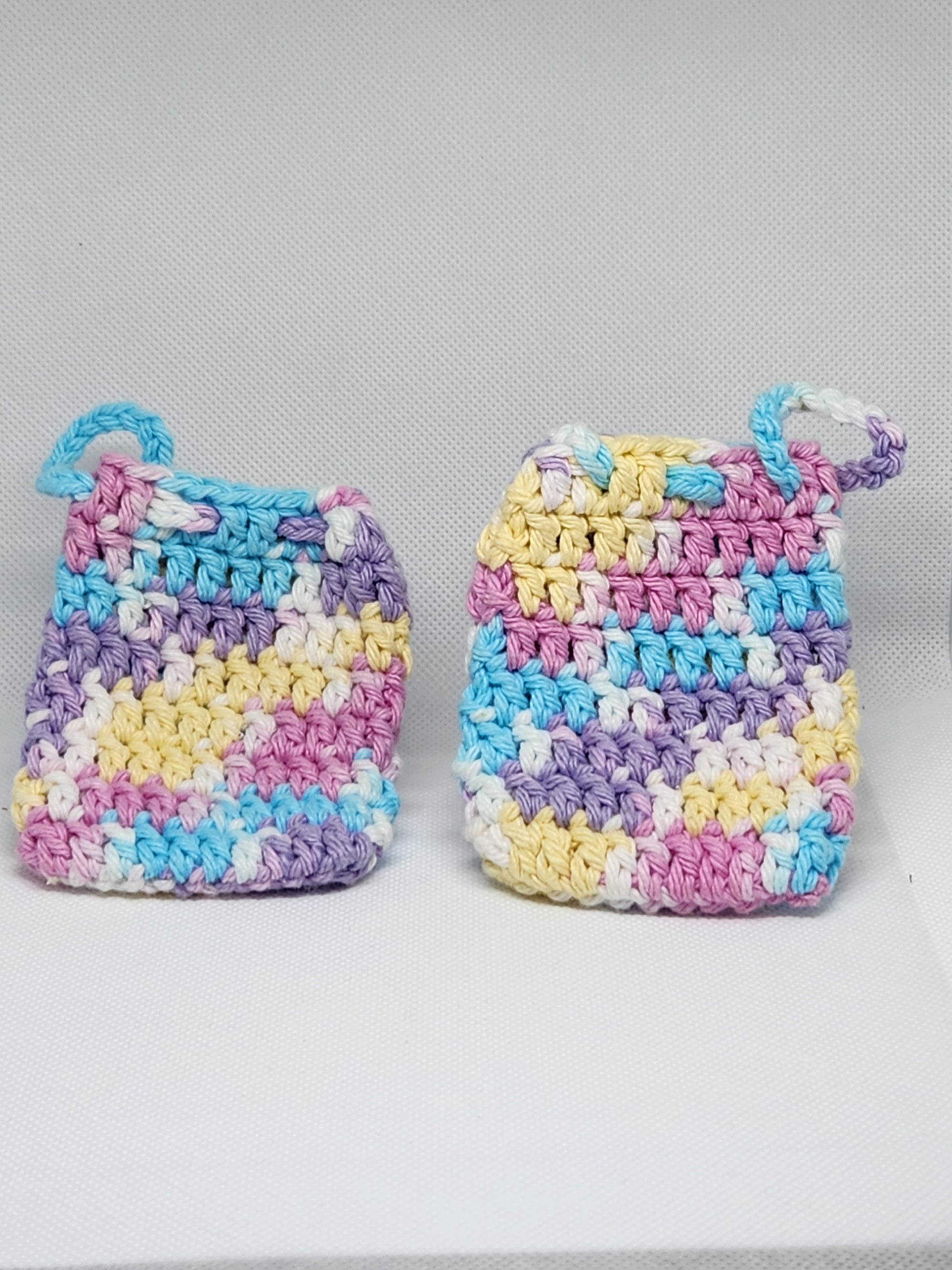These crochet soap savers allow you to get every last bit of your soap bar! When the bar becomes too small to wash your hands with, simply put the small bit of soap into the soap saver and wash your hands with it! They are made with 100% cotton, meaning you are able to machine wash them after using the remainder of your soap! This is another small way we're able to reduce waste within our own products and business, and we appreciate your interest in them!